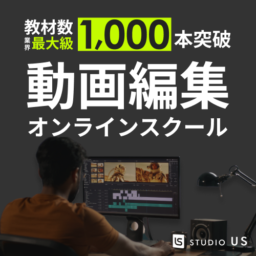 studio US(スタジオアス)は、動画編集・映像制作をオンラインで学べるスクールです。通学不要で、好きな時間に学習を進められるため、仕事や家事・育児と両立しながらスキルを身につけたい方に向いています。